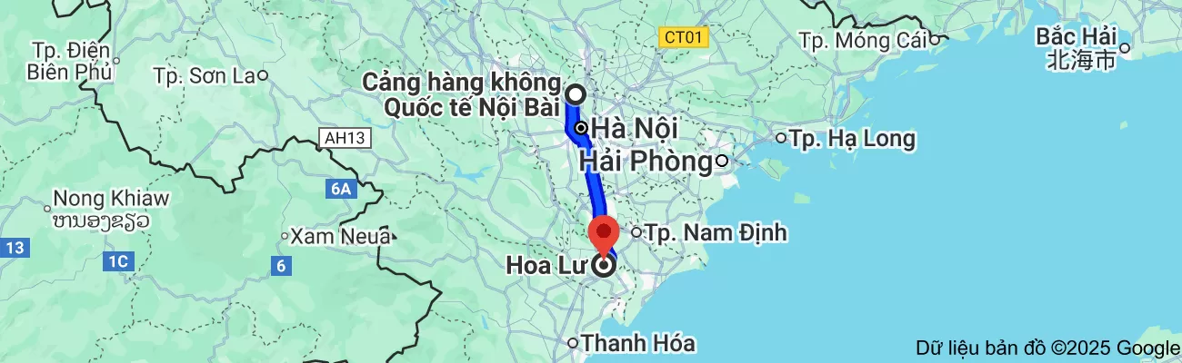- Nội Bài – tỉnh thành Ninh Bình: 120km